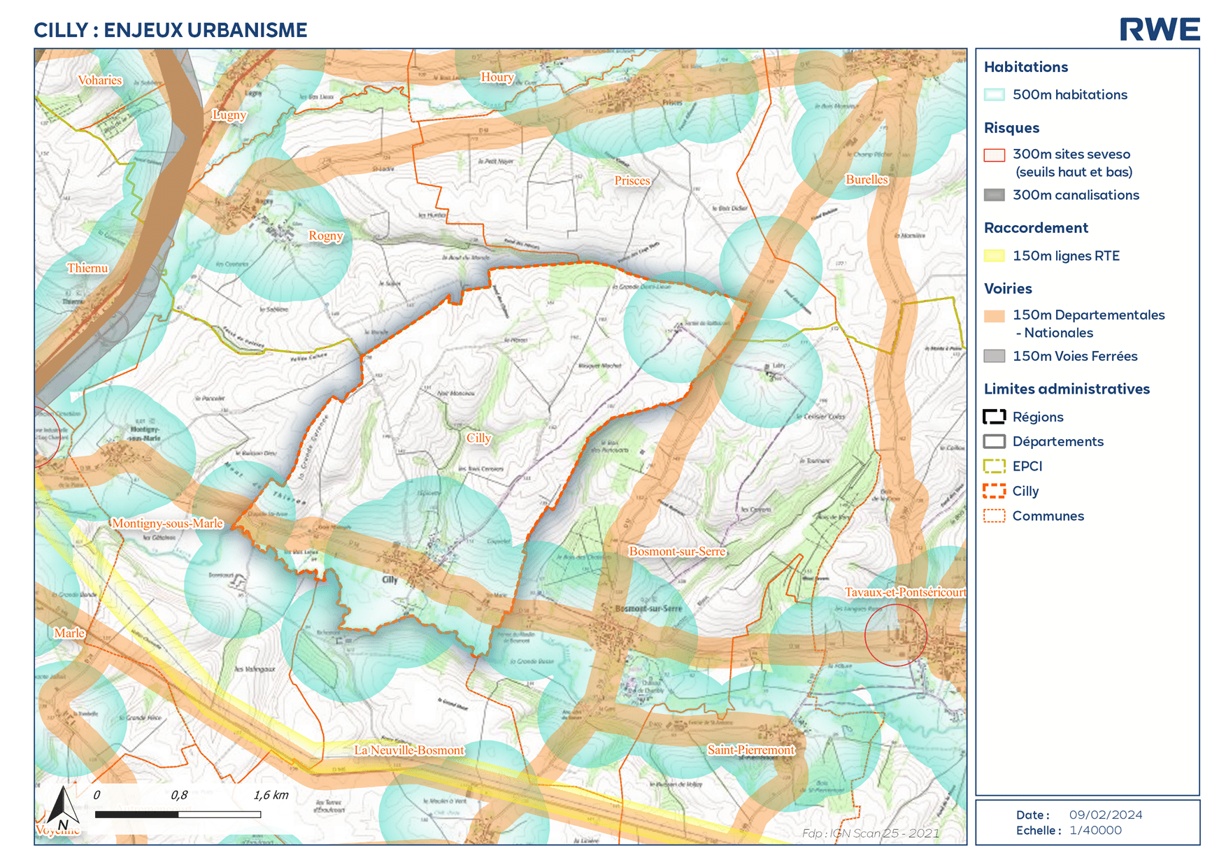 - Une distance réglementaire des éoliennes de 500 mètres minimum vis-à-vis des habitations de Cilly ;